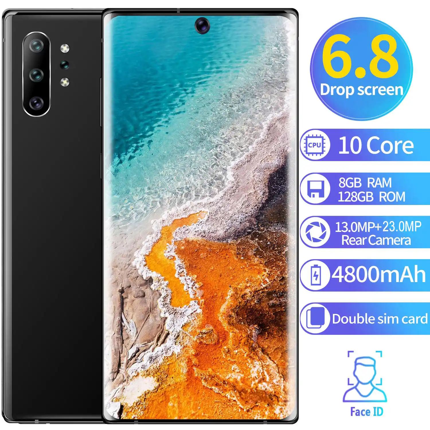 Smartphone 68 Cellphones Android Fingerprint Face Unlock