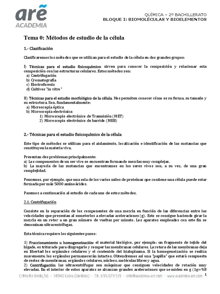Metodos Y Tecnicas De Estudio De Las Celulas