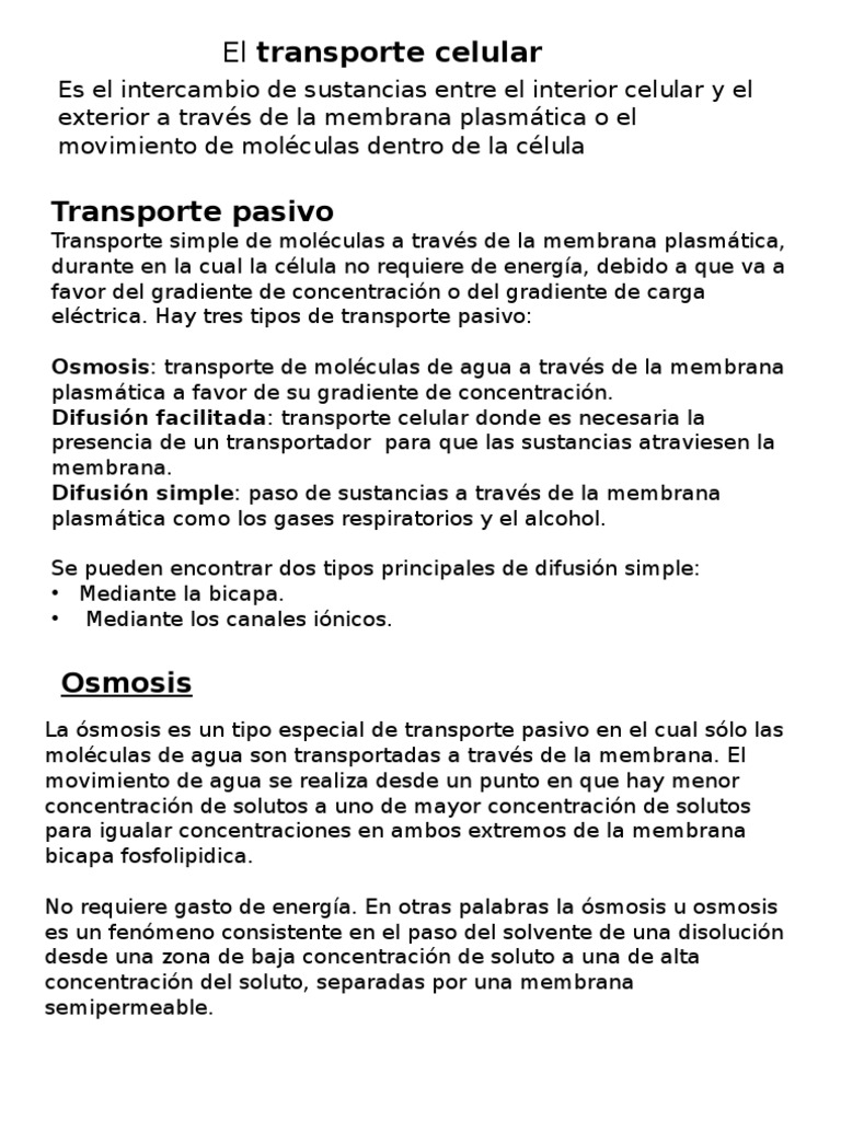 Transporte De Moleculas A Traves De La Membrana Celular