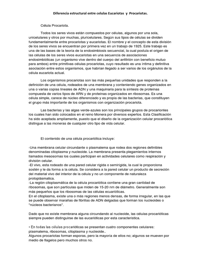 Diferencias Estructurales Entre La Celula Procariota Y Eucariota