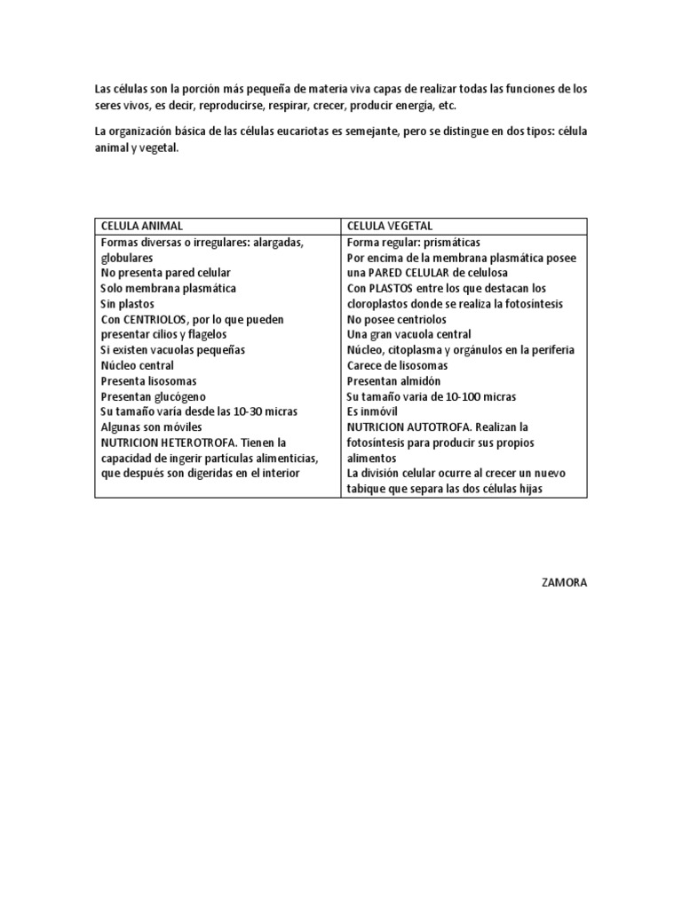 10 Diferencias Entre Celula Animal Y Vegetal