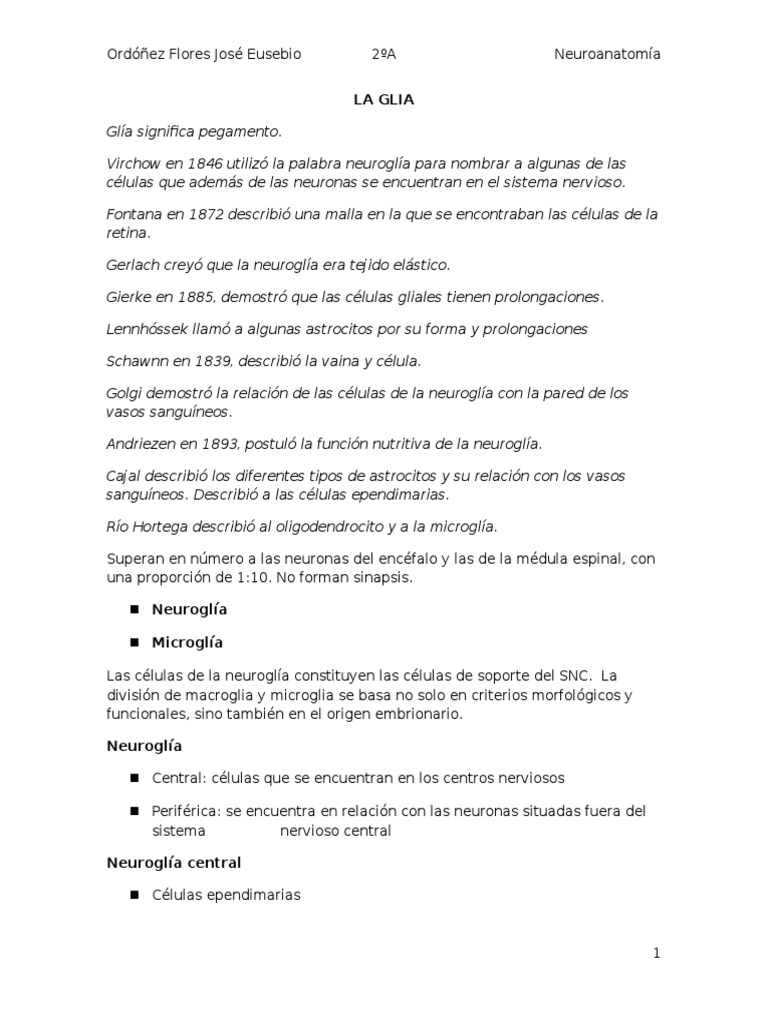 Datos sobre Diferentes Tipos De Celulas De La Glia.